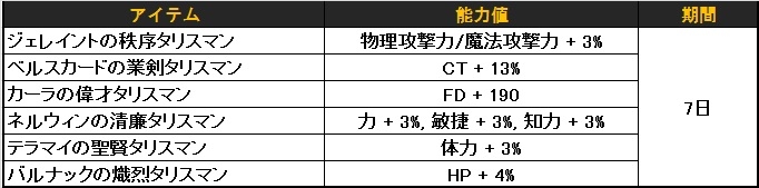 報酬アイテム:六英雄タリスマン、マジック上級タリスマン、レアタリスマンを制作出来るレア等級のタリスマンの核等