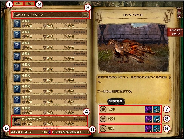 契約したことのあるドラゴンはアイコンが表示され、クリックすることで詳細を確認することができます。