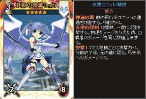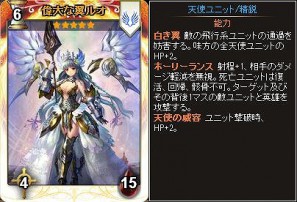 2014年3月12日(水)17:00~2014年3月26日(水)11:30の期間中、累計チャージDGが5,000 DGに達するごとに、プレミアム特典として「偉大な翼ルオ」「黒翼イズレイル」「刹那の双翼リュカ」「輪廻の双翼ユイナ」のうち、いずれか1枚をランダムでプレゼント!四天使カードは、品質が★4以上になることで、固有の能力を得ます。