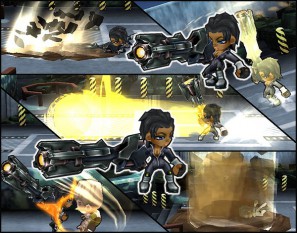 遠くの相手を攻撃することはもちろん、大きな砲身を振り回して射撃と打撃を織り交ぜた連携攻撃を行うことができるぞ!