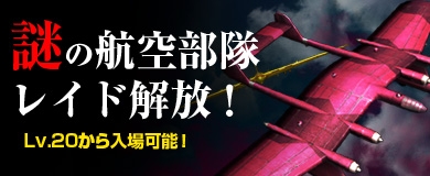 以前実施した「謎の航空部隊レイド」を期間限定で開放しちゃいます!Lv.20から入場可能です!多くのパイロットと編隊を組んで、レイドに挑戦しよう!