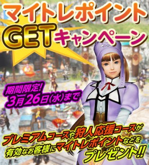 開催期間中に「プレミアムコース」「狩人応援コース」のいずれかをご購入いただいた際の特典としてマイトレポイントをプレゼント!