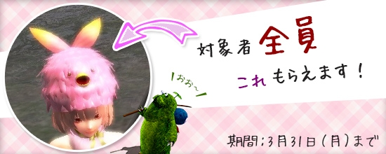2014年3月13日13:00 より、決済方法JCB オンラインプリペイドカード決済を追加、それを記念して同時刻から2014年3月31日10:00 にかけ、JCB オンラインプリペイドカード決済を累計3,000円以上ご利用いただいたお客様に頭部衣装「サクラナーハット」をプレゼントいたします!