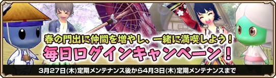 毎日ログインして遊ぶだけで豪華特典アイテムをご獲得いただける特別企画をご用意いたしました。毎日1時間以上ログインしていただいた日数に応じて各種「リミットクリスタル」などの豪華アイテムご獲得いただけます。是非ご参加いただき、たくさんの仲間たちと春の冒険をご満喫ください。