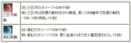 特技「三日月奥義」「青釭奥義」の効果を調整いたしました。