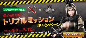 ゲームオンとファミマ・ドット・コムは、「Alliance of Valiant Arms」において、「【ファミリーマート限定】必ずもらえる!トリプルミッションキャンペーン」を本日4月8日より開始した。