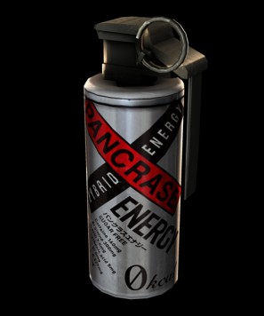 「AVA」公式ドリンク「パンクラスエナジー」をリアルに再現したドリンク缶型の手榴弾で、爆破させると「PANCRASE」ロゴがド派手に浮かびあがるというものです。ゲーム内での注目必至、他では入手できない特別なアイテムとなっております。