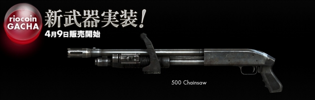 リオコインガチャに新武器「500 Chainsawガチャ」が登場。特徴的なグリップが取り付けられた個性的なショットガンです。ぜひ一度お試しください。
