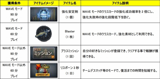 プレイタイムに応じて、素敵なアイテムが獲得できるイベントを毎日開催!今一番熱い革命的新モード「WAVEモード」の強化アイテムも手に入る!