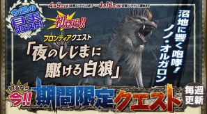 また、本日からフロンティアクエストにも「夜のしじまに駆ける白狼」を配信! こちらは雌響狼「ノノ・オルガロン」が登場するクエストとなっているので、 クエストをクリアしてオルガロン武具を生産しよう!