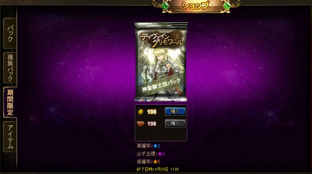 ※神聖騎士団パックの購入にVIPレベルやプレイヤーLv等の制限はありません。