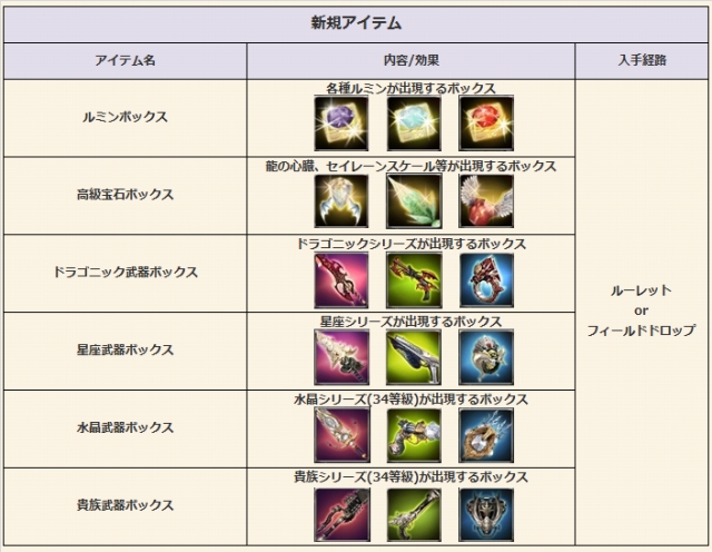 「高級宝石ボックス」「ルミンボックス」「武器ボックス」など新登場