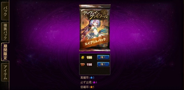 ※エイプリルパックからは★1~★5までのエイプリルカードのいずれかが必ず1枚出現します。