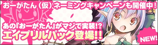 「おーがたん(仮)」の名前を募集いたします。決定後、ゲーム内の名称を新名称に変更します。見事採用となった方には、新カード登場時に該当の★4カードをプレゼントいたします。発表は2014年5月14日を予定しております。