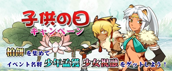 5月13日(火)までの期間において開催されている本キャンペーンでは、ゲーム内で獲得できるアイテム「柏餅」を一定個数集めることで、限定キャラクター「少年孟獲」や「少女祝融」が仲間になるそうだ。