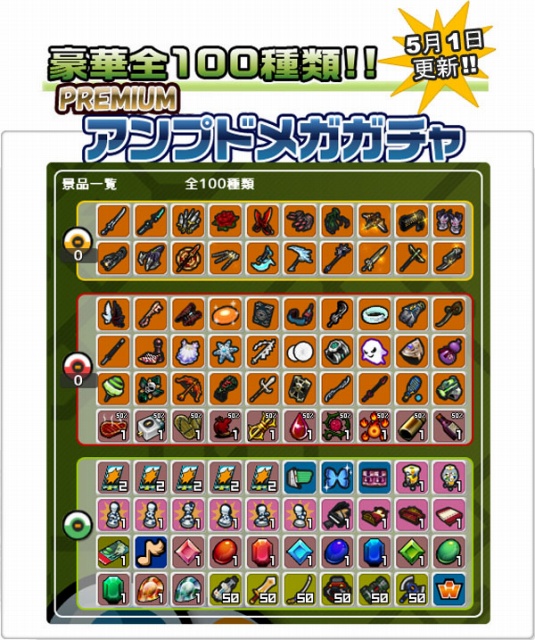 2014年5月1日(木)のアップデート後より、ゴールデンウィーク限定で2台の特別なアンプドガチャをプライムマーケットの中央に設置いたします。人気のレアアクセサリをまとめてゲットできるチャンスですので、お目当ての景品がございましたら是非ともご利用ください。