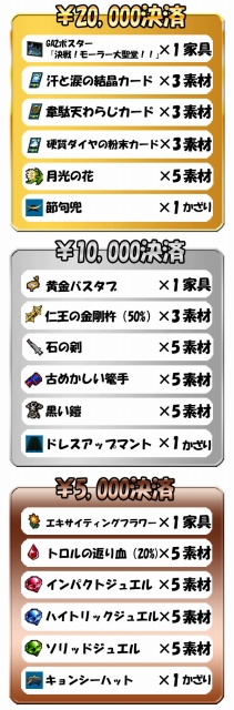 2014年5月1日(木)メンテナンス終了後から5月29日(木)メンテナンス開始前までの間、一度に5,000円以上の課金決済をされた方に素敵なプレゼントをさせていただきます。