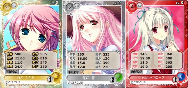 今回登場する限定カードは【CIRCUS】の「D.C.シリーズ」から「白河 ななか(SS)」、「花咲 茜(S)」、「シャルル・マロース(A)」の3枚となります。