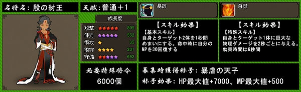 キャンペーン期間中、名将「殷の紂王」を獲得した方に以下のアイテムをプレゼント!