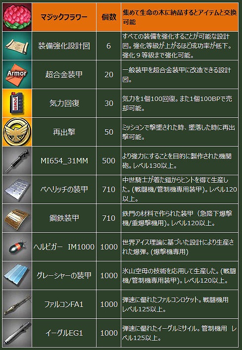 たくさんの「マジックフラワー」を集めて、機関砲や装甲などの豪華アイテムをゲットしましょう!