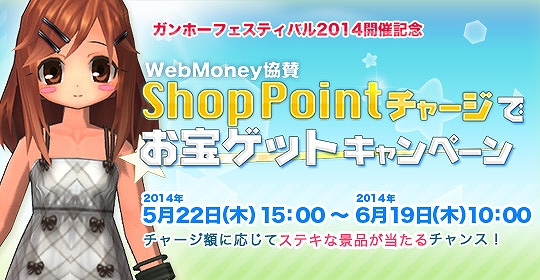 期間中エクストラアイテムを購入する為のShop PointをWebMoneyでチャージすると、豪華なゲーム内アイテムが当たるチャンス!
