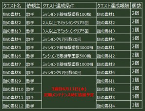今回のイベントは、ちょっと変わってる!?謎の素材クエストを酒場の歌手から受け、クエストをクリアで謎の素材をゲットできます!ゲットした素材を合成して、何ができるかはお楽しみ!?