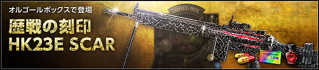 「HK23E SCAR」は、オープンドットと特殊カモフラージュを施した、バランスの取れたマシンガンとして登場します。