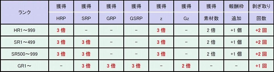 HRP/SRP/GRP/GSRP/z/Gz/剥ぎ取り回数が増加!さらに5月30日(金)からの「3のつく日&第3週末はHRP たっぷりデー!」で配信されるクエストが「報酬ブースト祭」の効果により報酬を大量GETできるチャンス!