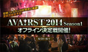 5月上旬から予選が行われた「AVA RST2014 Season1」の最終トーナメントには、「爆破」部門8クラン、「護衛」部門6クランの計14クランが参戦します。試合は選手たちが実際に顔を合わせるオフラインで行われますが、今回は観覧募集は行わないため、全試合を会場から生中継いたします。