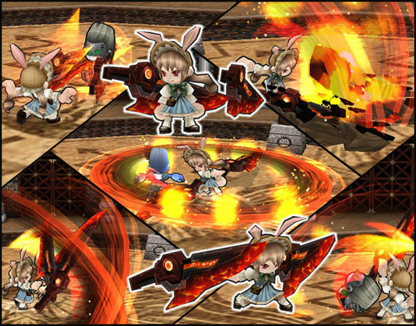 マグマの持つ熱エネルギーを特殊な技術で凝縮しコアとして埋め込んだ一対の大剣。巨大な刀身により広い範囲への攻撃を行うことができ、近づく相手を燃やし尽くすぞ!