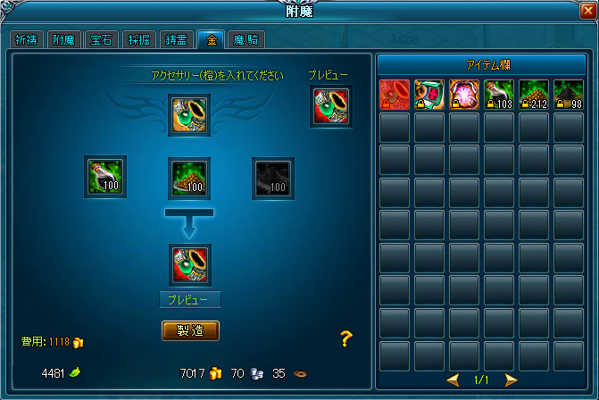 MBの「道具合成」に「金のアクセサリー」の項目を追加しました。