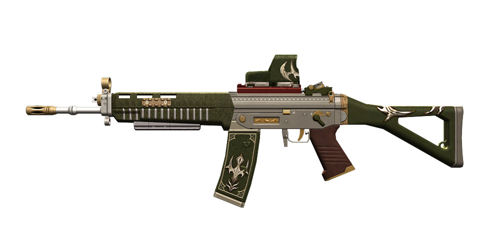 「SIG551 Belial」はホログラフィックサイトを搭載しており、全体的に高いパラメータを誇るが故に、応用力が求められるアサルトライフルとして登場します。比較的短い距離での戦闘を得意とし、中距離内での撃ち合いを有利に進めることができます。遠距離での戦闘にはあまり向いていませんが、初弾数発の射撃精度は非常に高い為、その特性を生かせば反撃することも可能です。