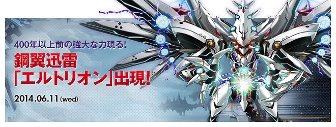 今回登場するエルトリオンの討伐に成功すると、ソケット枠の強化アイテム制作に必要な「古代の鉱石」を獲得できます。また、稀に最高峰の能力を持つ武器「鋼翼迅機シリーズ」を入手できます。