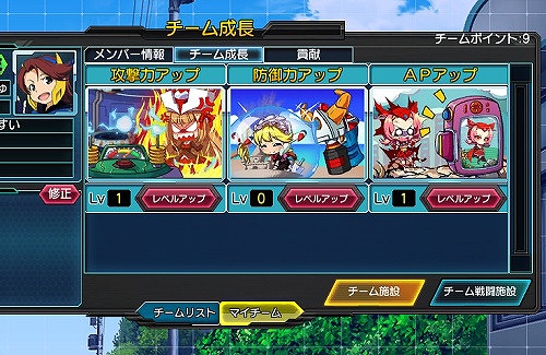 また、みんなでゲーム内通貨「お小遣い」を寄付すると「チーム」が成長し、最大加入人数が増加するほか、成長時にもらえるポイントを割り振ることで「チーム」全員が恩恵を得られるなど、嬉しい効果が盛りだくさん。ぜひお友達と一緒に「チーム」を育てて、ともに強くなろう!