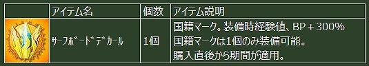 夏の訪れを感じさせるサーフボードデカールは経験値/BPが+300%の効果があります。一気に上のレベルを目指したい場合にはぜひご利用ください!