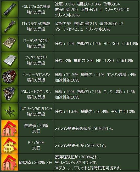 2014年5月10日以降ログインしていなかったパイロットに、パイロットにLv1から装備可能な伝説の装備各種、「経験値+50% 20日」、「BP+50% 20日」、「経験値+300% 3日」をプレゼントいたします!
