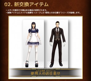 「修羅神のメダイ」で交換することが出来るコスチュームに、ユーザーの皆様からの要望が大変、大変、大変に高かったメイド&執事をイメージした「使用人のお仕着せシリーズ」が登場します!