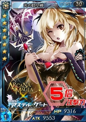 期間中のカードガチャ「連星召喚」と「幸運召喚」からは、「アルカナ・マギア(アルマギ)」のカードが登場します。超レアカード「光の時空神」のランクは、ゲーム初登場となる★7(LEGEND)!