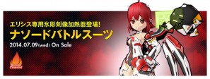 有料ガチャアイテム「氷彫刻像加熱器」から、エリシス専用の「ナソードバトルスーツ」アバターが登場します。最新ナソード技術を駆使して作られた強力にして無慈悲なる威力を秘めた最新鋭のバトルスーツアバターです。