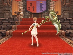 本ルーレットでは、「メルファリアマーチ」のキャラクター「ファブニル」が所持している杖をモチーフとした武器シリーズと、その色調に併せてリファインカラーとなった司令官・師範防具が共通防具となってラインアップされています。なお、今回の武器シリーズは人気のエフェクト機能を実装した新作となります!