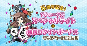 「ブラウザ三国志」サービス5周年を記念して、BPで引ける特別なブショーダスや、豪華なアイテムがもらえる継続ログインボーナスをご用意しました!