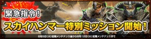 キャラクターのレベルを問わず、すべての皆様がお気軽にお楽しみいただけるミッションイベント「スカイハンマー特別ミッション」をスタートいたしました。ミッションは熟練度別に4種類設定されており、それぞれのミッションを達成するごとに、特典をご獲得いただけます。すべてのミッション達成に是非ご挑戦ください。