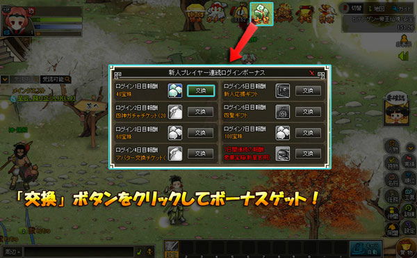 新人プレイヤー連続ログインボーナスプレゼント内容