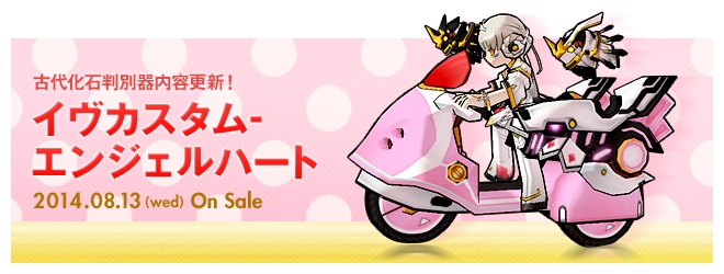 有料ガチャアイテム「古代化石判別器」から新たな騎乗ペット「イヴカスタム-エンジェルハート」を獲得できます。女性向けにデザインされた美しいボディーは、エリオスの女性に大変人気があります。また、期間限定で騎乗ペットが必ず手に入る「召喚石」も販売します。