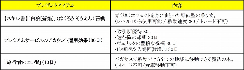 キャラクターを作成するだけで下記の特典をプレゼント!