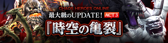 セガは、「カオス ヒーローズ オンライン」において、本日8月26日に大型アップデート「ACT3時空の亀裂」を実装した。