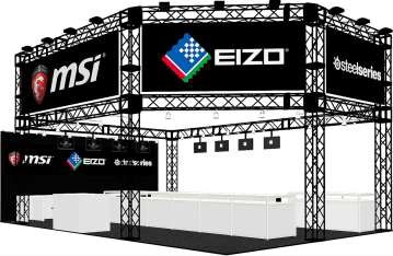 個人用から医療・産業用途まで幅広く液晶モニターを開発・生産・販売する「EIZO」、ノートブックPC・マザーボード・グラフィックスカードで世界をリードする「MSI」、プロゲーマーご用達のマウス・ヘッドセットなどを開発する「SteelSeries」による合同ブースでは、実際のプレイを通じて、各デバイスの最新モデルを体感することができる。