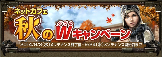 ゲームオンは、「Alliance of Valiant Arms」において、本日9月3日より「ネットカフェ 秋のWキャンペーン」を開催する。