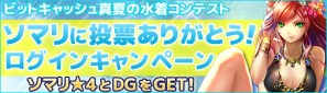 ビットキャッシュ真夏の水着コンテスト2014にて、「ディヴァイン・グリモワール」のバカンス猫ソマリが「セクシーダイナマイツ賞」を見事受賞いたしました!受賞を記念して、バカンス猫ソマリをプレゼントするログインキャンペーンを開催中です。ソマリを応援していただき、まことにありがとうございました!