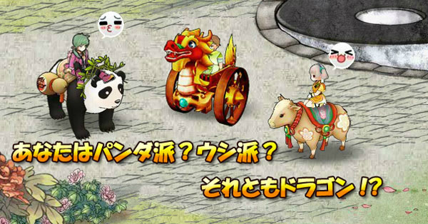 また、騎乗獣の育成レベルが一定以上になると、騎乗獣の外見を「馬車」や「パンダ」といった乗り物に変更する事が可能となります。